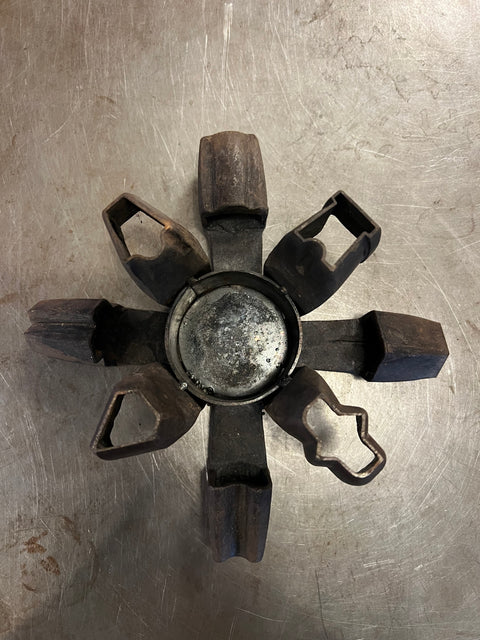 Ljusstake tillverkad av gamla märkyxor